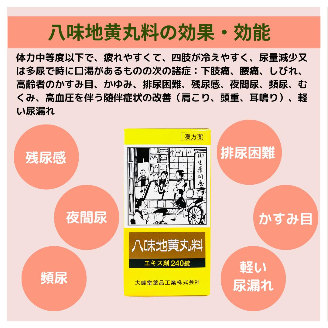 八味地黄丸料エキス錠 240錠【大峰】残尿感 夜間尿 軽い 尿もれ かすみ目 かゆみ 排尿困難 むくみ 肩こり 頭重 耳鳴り 下肢痛 腰痛 しびれ 尿トラブル【第2類医薬品】【送料無料】