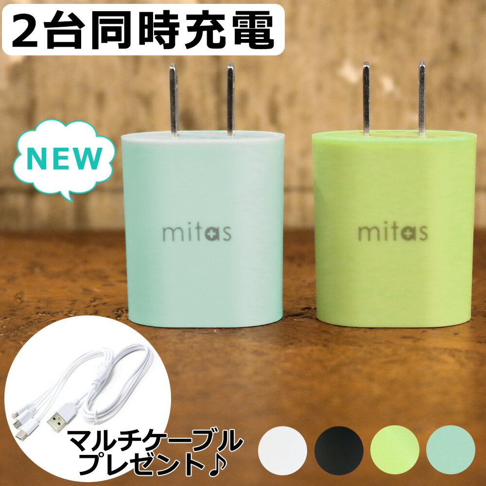 USB 充電器 usbコンセント 【2個セット 2本ケーブル付き 】 ac アダプター PSE認証 2USBポート 軽量 スマホ充電器 iPhone iPad Sam